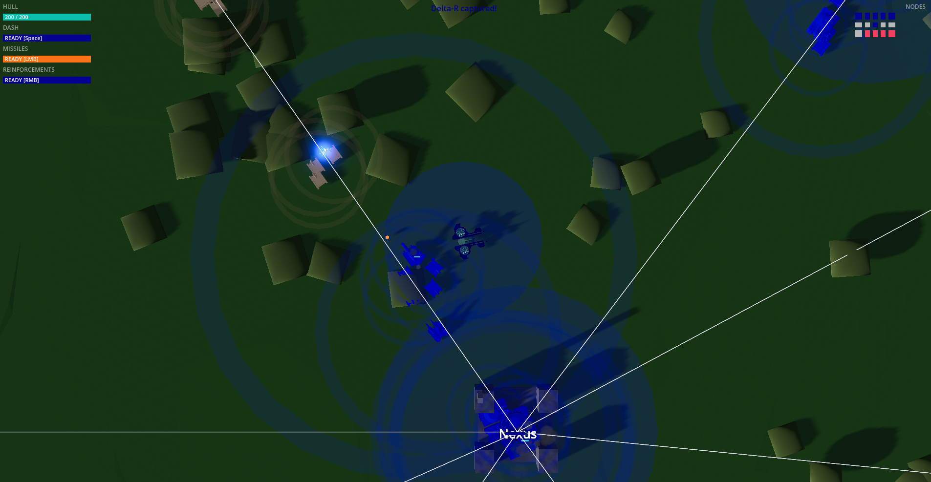 Capture nodes by sending ground troops — your helicopter alone can clear defenders, but you need boots on the ground to hold territory.
